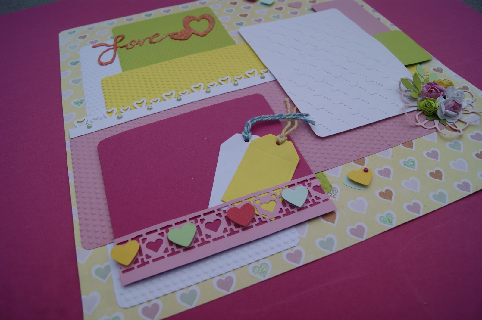 A minha amiga oculta foi a Marisa Leal e decidi fazer um LO inspirado na foto que ela tem no seu perfil, onde ela está a dar um beijinho à sua filha...um "love carinhoso" e o resultado foi este: